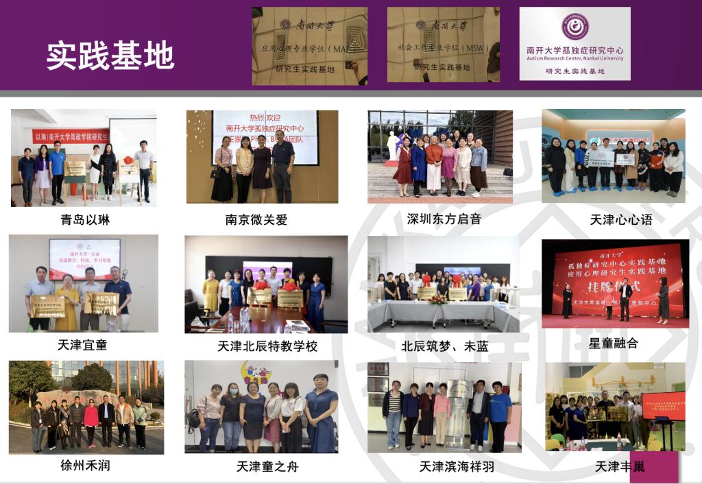 为更好地服务孤独症患者及其家庭,提升孤独症康复领域的研究与建设水平,促进孤独症儿童发展,推进高端人才智库建设,推动孤独症研究领域的进步和发展,公司应用心理专业硕士(MAP)中心联合社会工作专业硕士(MSW)中心、雷竞技RAYBETAPP孤独症研究中心、雷竞技RAYBETAPP医公司等相关导师和工作人员,实地考察了全国多家孤独症儿童康复机构,并设立了多个专业硕士研究生实践基地。截至2023年底,公司已先后与天津市北辰区特殊教育公司、天津市北辰区筑梦残疾人培训中心、天津宜童孤独症研究服务中心、天津市蜂巢儿童健康发展中心、天津市滨海新区祥羽孤独症康复中心、天津市星童融合孤独症康复中心、天津市心心语孤独症与脑瘫儿童康复服务中心、青岛以琳康教展能中心等8家孤独症康复机构签订了不同时长的专业学位研究生联合培养实践基地协议书,为MAP和MSW员工提供了多个实习实践岗位。