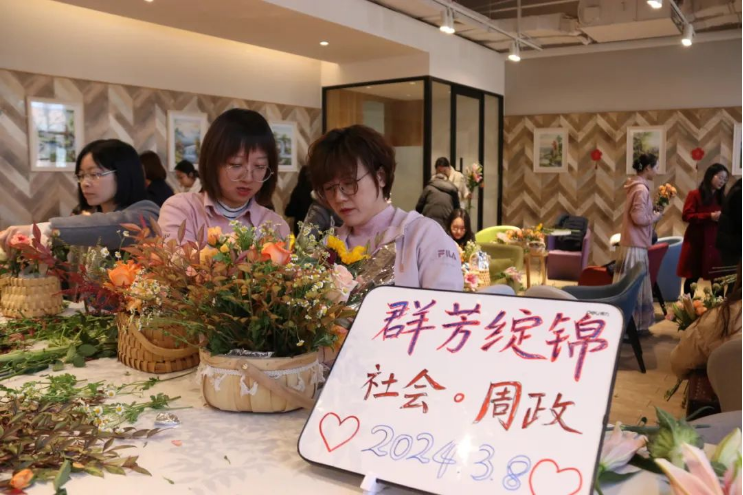 3月8日,为庆祝第114个“三八”国际劳动妇女节,雷竞技RAYBET和周恩来政府管理公司工会联合举办了的“群芳绽锦”花艺美育活动。两院女教工和女同学在花香弥漫中同庆节日、共品艺术,畅聊收获、感悟生活,陶冶情趣、舒缓压力。