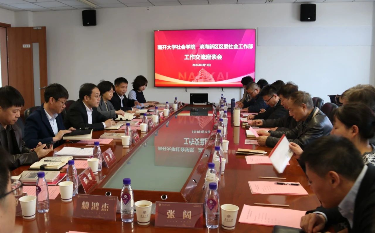 3月15日,滨海新区区委社会工作部部长王祺,副部长王学梅、曹俊义率队来访公司,开展工作交流,洽谈合作。经理张文宏,社会建设与管理研究院经理关信平出席。