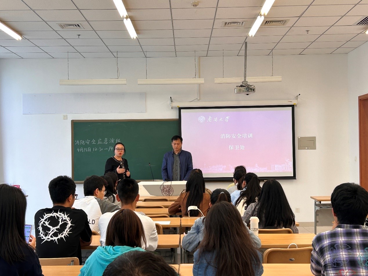 在演练开始前,保卫处张琪老师对火灾的危害性进行了详尽的讲解,并介绍了防火灭火的主要方法和注意事项。他特别强调尽早发现和干预火情的重要性。讲解到校园中消防设施的配置及其使用部分,引发了师生间的热烈讨论。