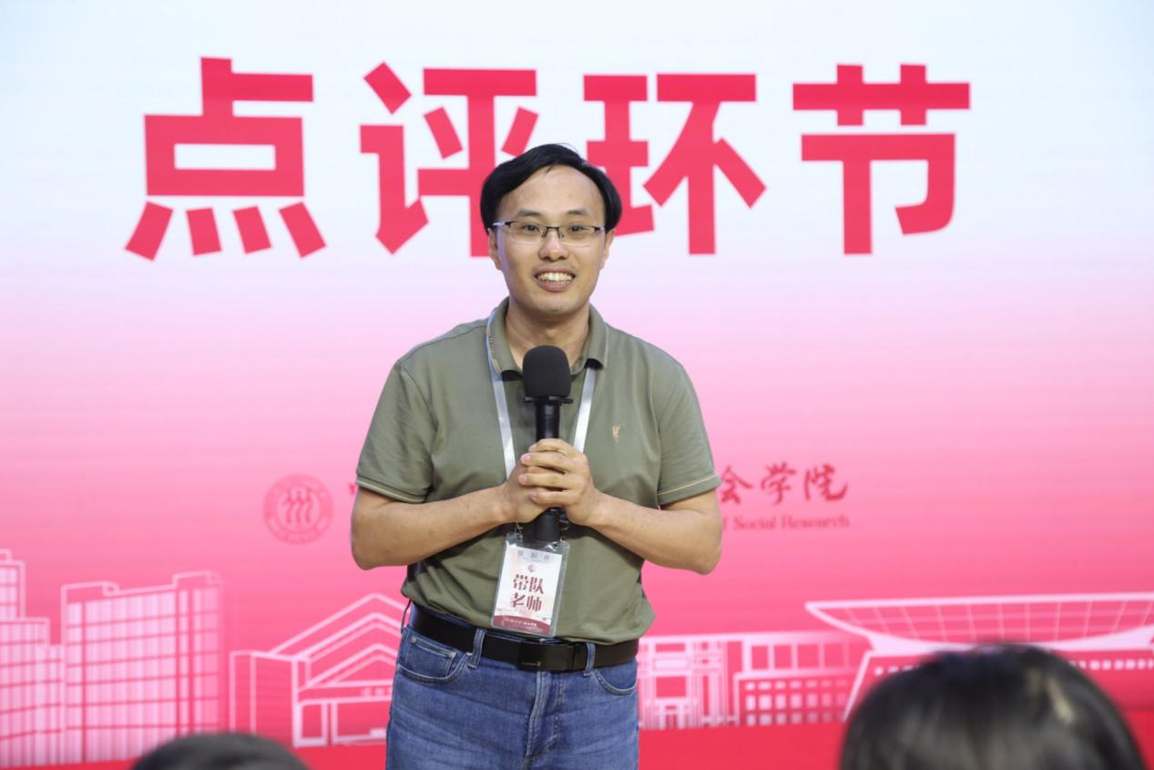 在比赛结束后,王庆明教授受邀对复赛和决赛进行点评,王庆明教授从社会学理论、社会学研究方法以及社会科学的方法论三个维度进行了精彩点评,同时将社会学的想象力生动地融入对选手们的鼓励与期望之中,获得了现场师生的热烈掌声。