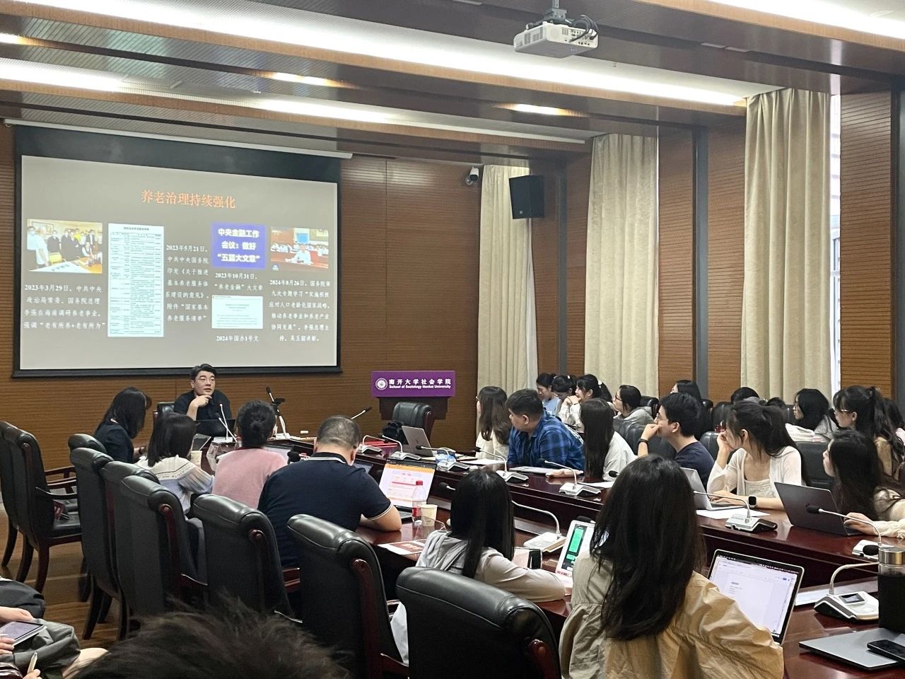 谈及“死亡”这一沉重而又不可避免的话题,胡湛教授分析了“安宁疗护(Hospice Care)”的定义边界,细致阐述了其实施时机、服务地点及服务内容等重要问题。同时,胡教授还结合中国实际,分享了国内安宁疗护的实践进展及中国老年人特有的临终模式,为在座师生提供了宝贵的启示。