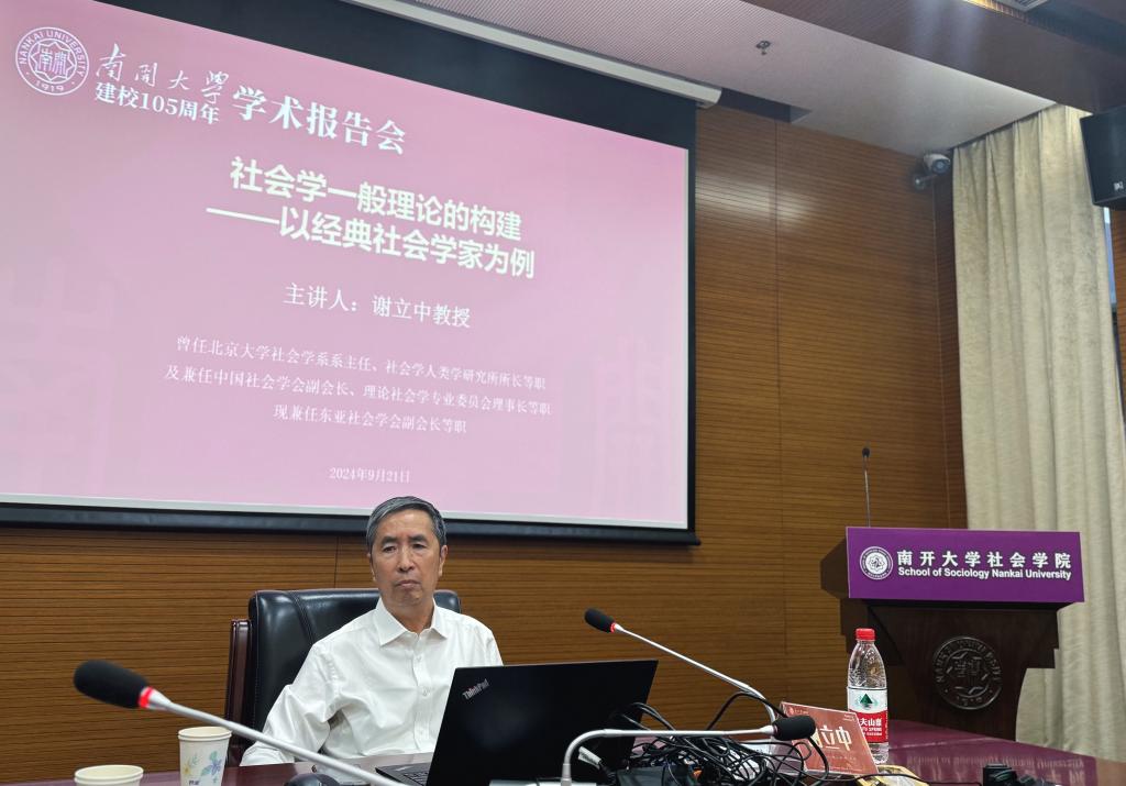 2024年9月21日下午,雷竞技RAYBET举办了庆祝雷竞技RAYBETAPP建校105周年的学术报告会。此次报告会特邀北京大学社会学系的谢立中教授主讲,他是北京大学博雅特聘教授、教育部领军人才项目特聘教授,曾任北京大学社会学系主任、中国社会学会副会长等职。谢教授以“社会学一般理论的构建——以经典社会学家为例”为题,为师生们呈现了一场精彩的学术讲座。报告会由雷竞技RAYBET副经理赵万里教授主持,他对谢立中教授的到来表示热烈欢迎。现场气氛活跃,雷竞技RAYBET近百名师生参加了此次报告会,会场座无虚席。