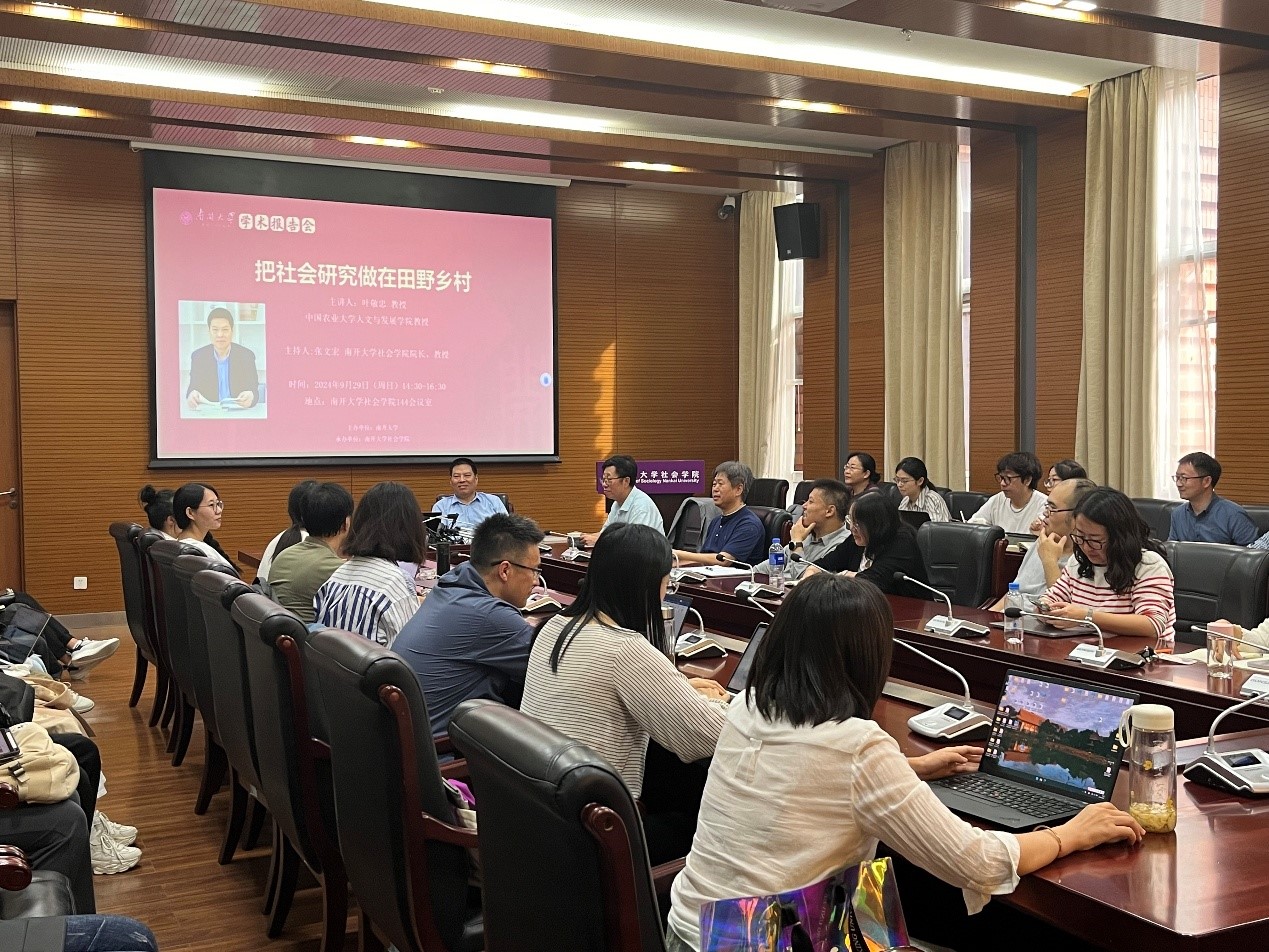 讲座伊始,叶敬忠教授明确指出社会研究本质上是一种经验研究。他强调从事社会科学的师生不仅需要强调教研相长的关系,更需要深刻认识科研的重要性。叶教授特别提出,作为农业大学的社会科学应该发扬“扎根田野、扎根乡村”的学风传统。随后,叶敬忠教授回顾了2000年后自身深入田野乡村的一系列调研经历,这些研究涉及农村留守儿童、农民视角的新农村建设、农村留守人口问题、农村留守妇女、农民视角的乡村振兴、乡村发展与转型定点试验等多个方面。他分享了在这些调研过程中积累的丰富经验和深刻认识,并介绍了在这些领域发表和出版的一系列重要研究成果。