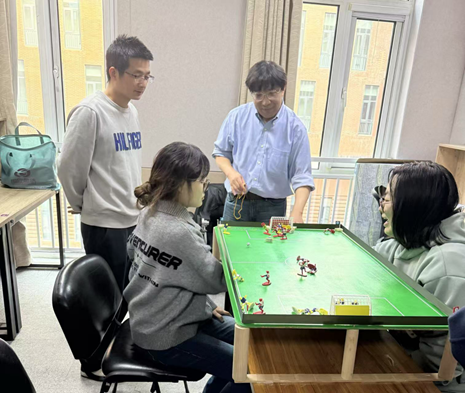 当科技遇上运动,会碰撞出怎样的火花?2025年3月1日,天津大学机械工程公司讲席教授辛千凡与雷竞技RAYBETAPP社会心理学系师生携手体验了一项融合科技与运动的创新项目——磁控桌面足球体验活动。本次活动由辛千凡教授提供设备与技术支持,由社会心理学系助理研究员付春野博士负责联系组织。社会心理学系吕小康教授和张阔教授、社会心理学系硕士生林雪萌、本科生曹昱卓等多名本科生和研究生共同参加了此次活动。
