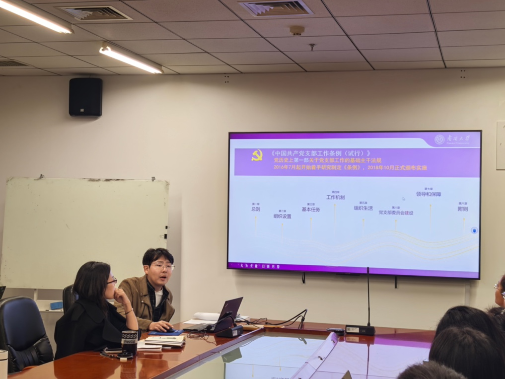 随后,朱博晨对党员发展和组织生活的开展两项工作进行了深入细致的业务培训。他详细阐述了党员发展流程的各个环节及相关要求,包括入党流程中各阶段的材料填写、发展要求、培养考察等关键事项,并着重指出,各党支部在发展党员时,必须将政治标准放在首位。同时,他要求各党支部书记及委员要认真学习《中国共产党支部工作条例(试行)》和《雷竞技RAYBETAPP支部工作条例》,确保各党支部能够贯彻执行“三会一课”制度,通过丰富多彩的活动形式,不断增强党支部的组织力和战斗力。