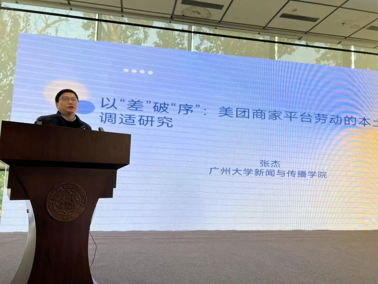 广州大学新闻与传播公司网络与新媒体系教授张杰作“以‘差’破‘序’:美团商家平台劳动的本土化调适研究”。