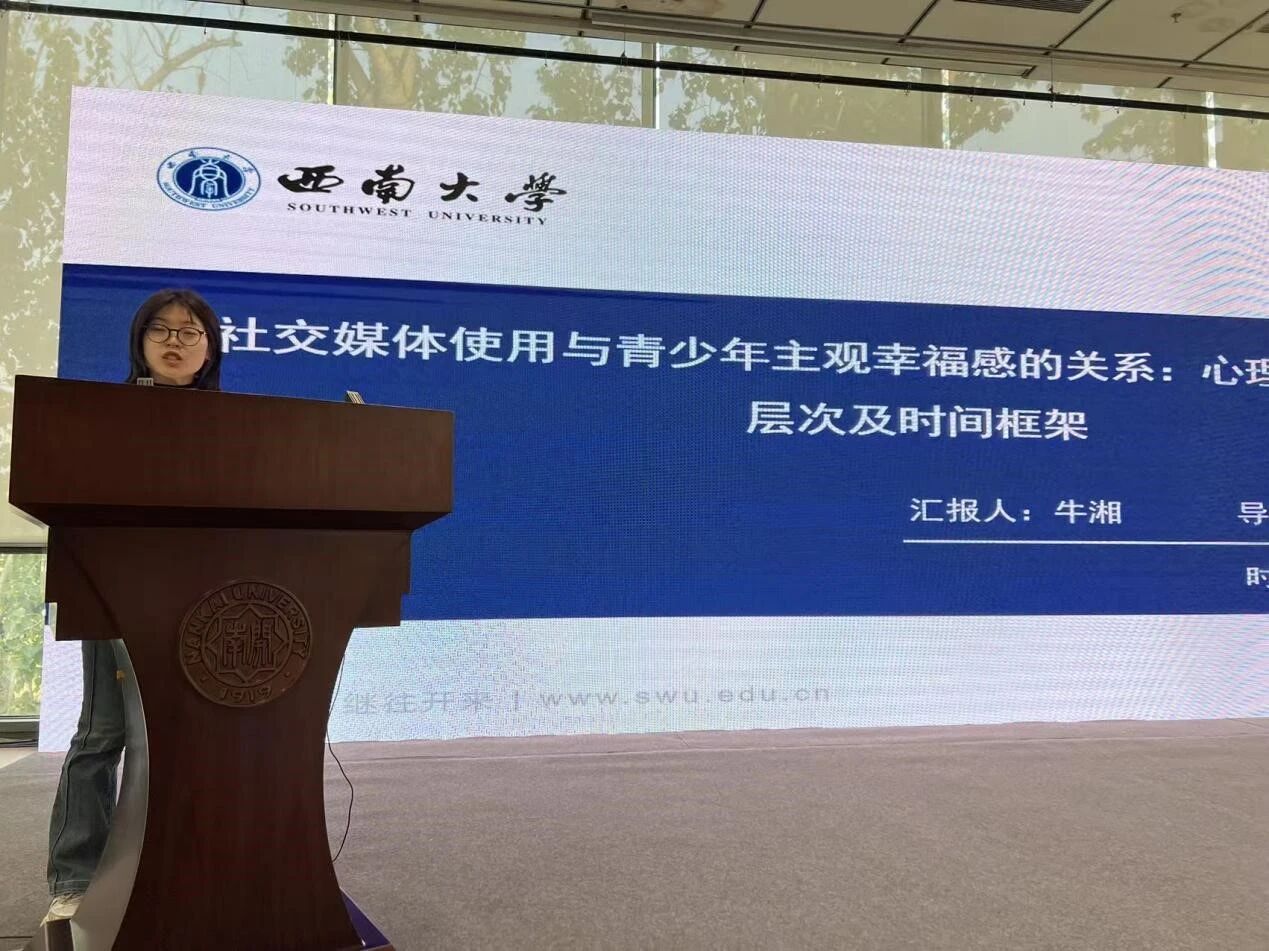 西南大学心理学部教授王金良作“社交媒体使用与青少年主观幸福感的关系:心理机制、分析层次及时间框架”的报告。