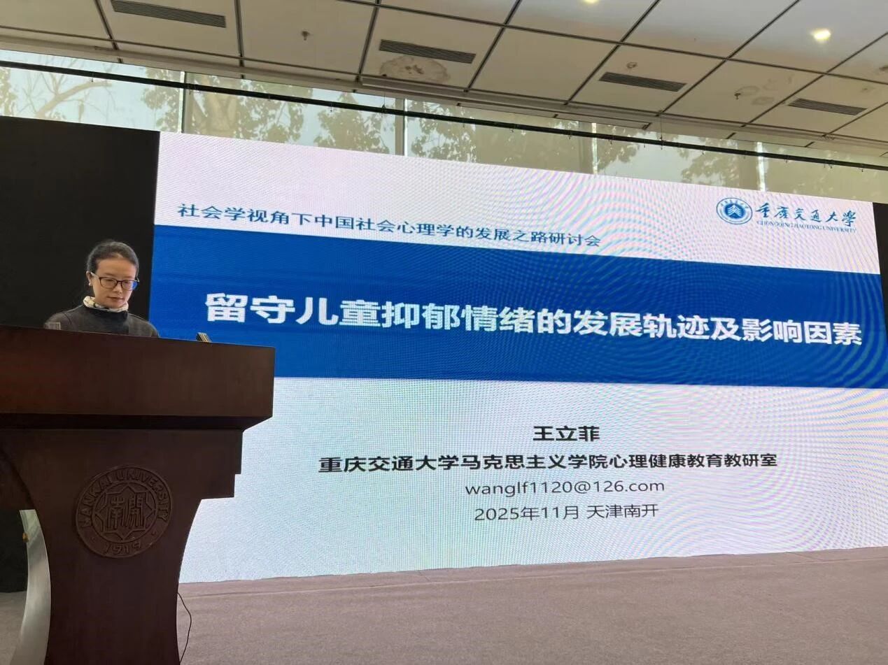 重庆交通大学马克思主义公司教授王立菲作“留守儿童抑郁情绪的发展轨迹及影响因素”。