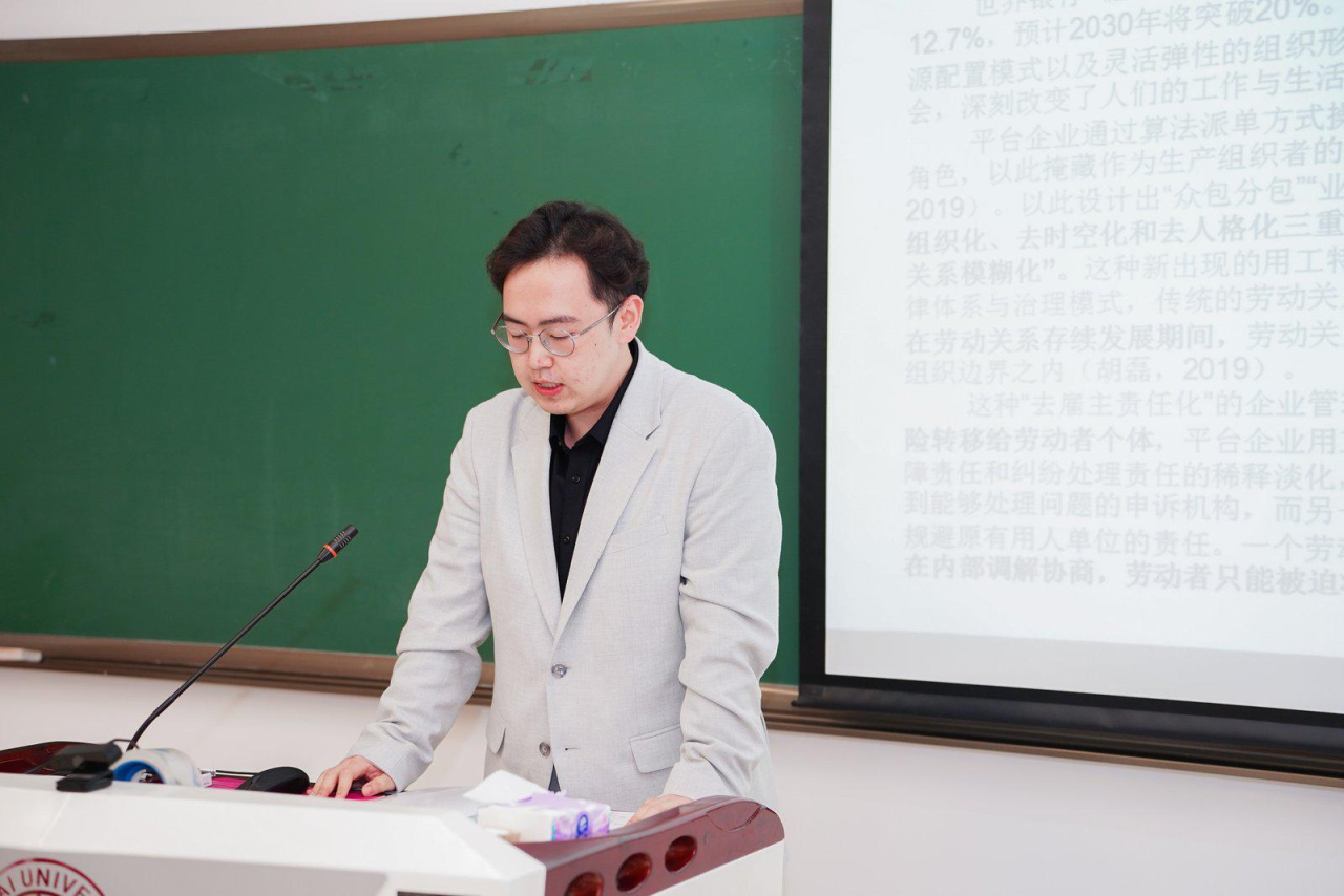 陈永杰副教授在评议中高度评价青年学者对新兴就业形态的敏锐洞察,认为研究涵盖概念建构、制度分析、实证探索等多个层面,展现了社会政策研究的广度与活力。他建议研究平台经济需对中国当代区域间发展差异、社会阶层和社会保险前路有透彻认知,鼓励同学们以实践体会同时建议进一步加强理论整合与政策落地的衔接。