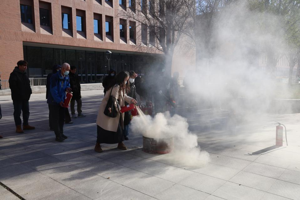 活动当天,率先开展理论培训环节,保卫处工作人员详细讲解了灭火器分类、适用场景及操作规范,包括干粉灭火器、二氧化碳灭火器等常见类型,并借助具体案例讲解现场灭火措施,为后续的实战操作打下坚实基础。