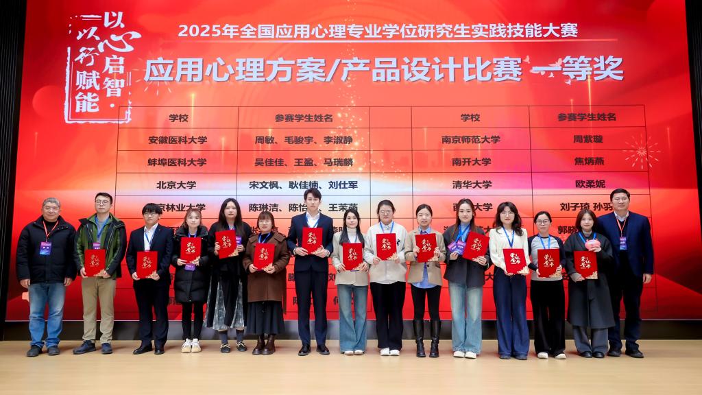 12月6日至7日,2025年全国应用心理专业学位研究生实践技能大赛在华东师范大学圆满落幕。本届大赛由中国学位与研究生教育学会应用心理专业学位工作委员会和华东师范大学心理与认知科学公司联合主办,吸引了来自全国146所院校的641个作品同台竞技。大赛旨在深化应用心理专业学位公司产品模式改革,强化实践育人环节,提升员工解决实际问题的综合能力。