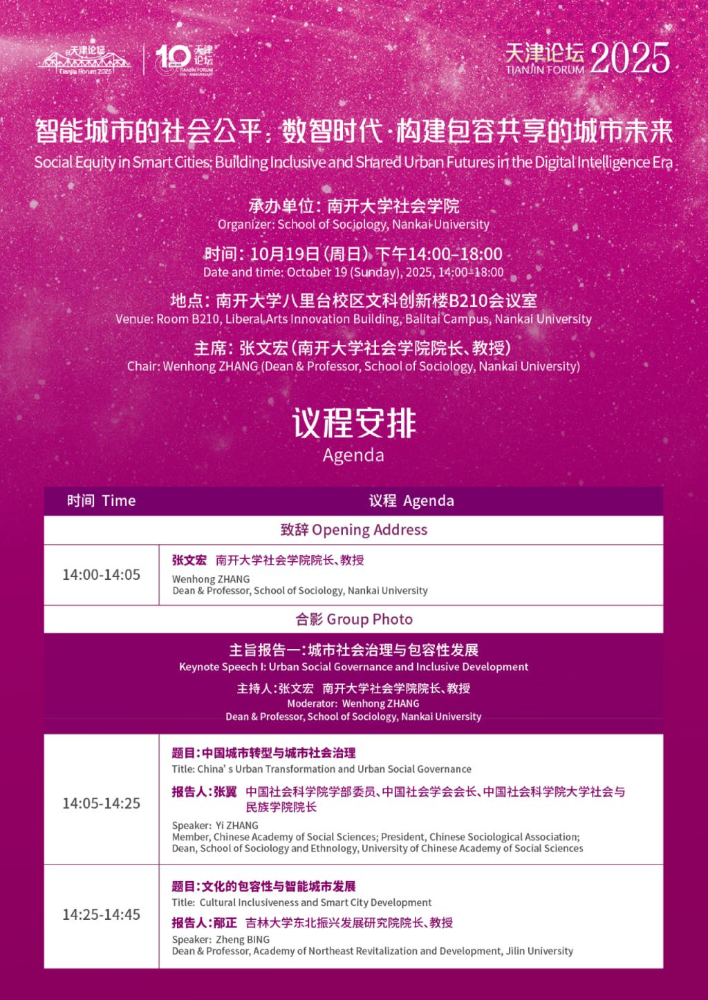 群学·资讯|天津论坛2025·平行论坛——智能城市的社会公平:数智时代·构建包容共享的城市未来
