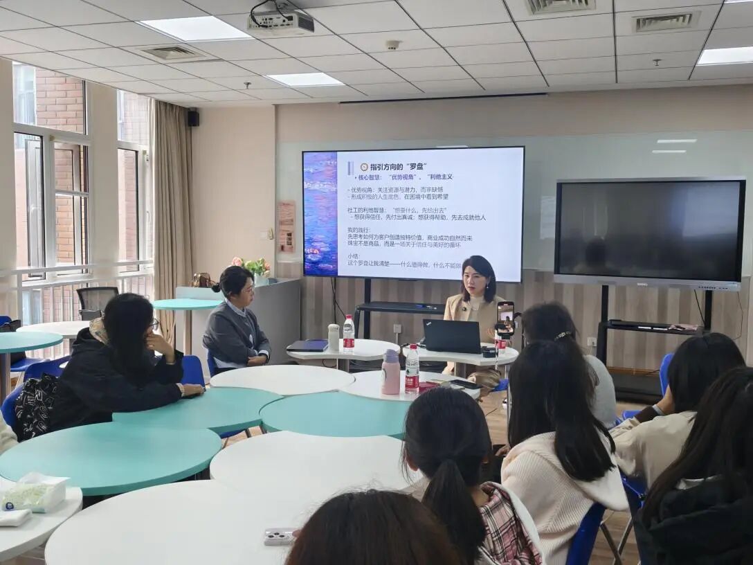 最后,王淼老师对徐毓的精彩分享表示感谢。徐毓的跨界经历颠覆了“专业限制职业”的传统认知,社会工作专业培养的共情力、系统思维等核心能力具有极强的可迁移性,是当代职场的“通用操作系统”,为社工学子打开了职业发展的多元想象空间。此次交流不仅让与会同学们深刻认识到社会工作专业能力在多元领域的应用价值,更传递了“以核心能力为基、以热爱与行动为翼”的成长逻辑,为员工拓展职业视野、重构专业自信提供了鲜活范例。