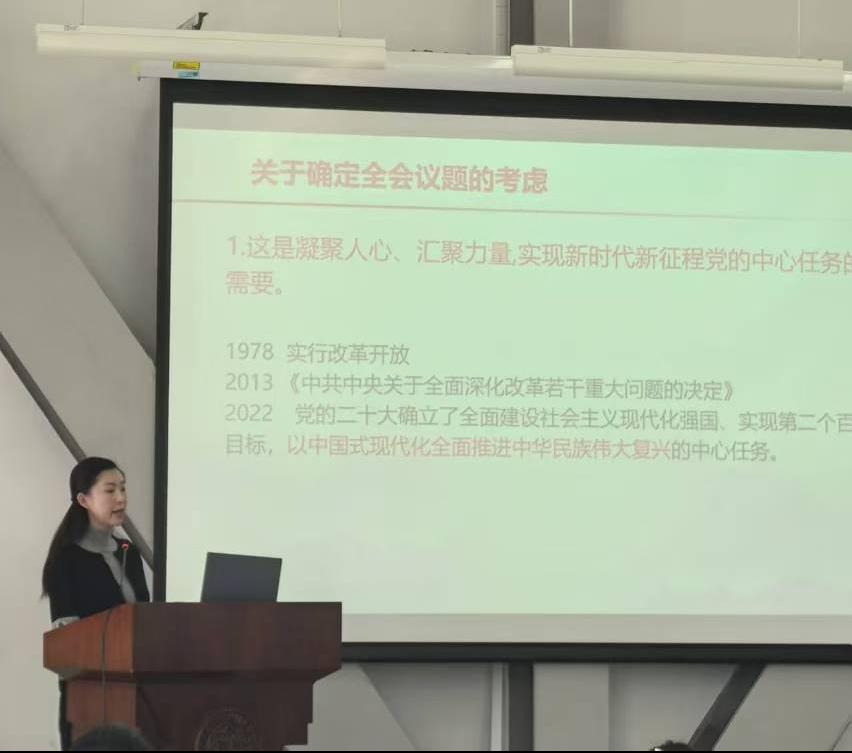 马梦菲在授课的最后鼓励现场学员,要以全会精神为滋养,以服务人民为使命,以回馈社会为目标,将个人成长与时代发展紧密结合,勇担时代重任,积极投身社会实践,用实际行动践行全会精神,为实现中华民族伟大复兴贡献青春力量。