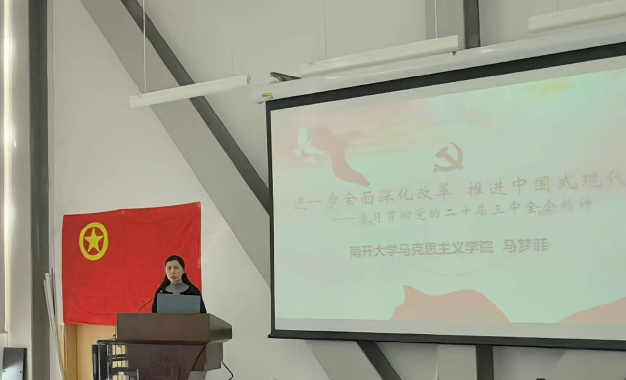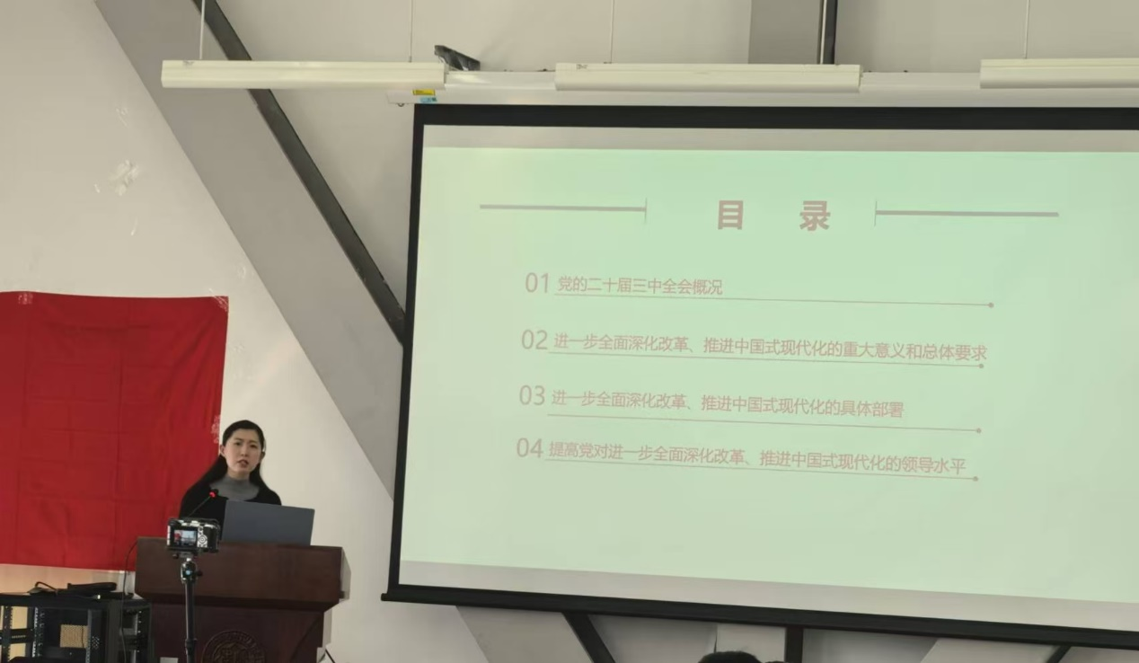 在本次团课中,马梦菲紧密围绕党的二十届三中全会精神,从全面掌握全会概况,到深入理解进一步全面深化改革、推进中国式现代化的重大意义、总体要求和具体部署,再到坚持和深化党的全面领导,带领同学们对党的二十届三中全会精神进行了全面、系统的学习分享。